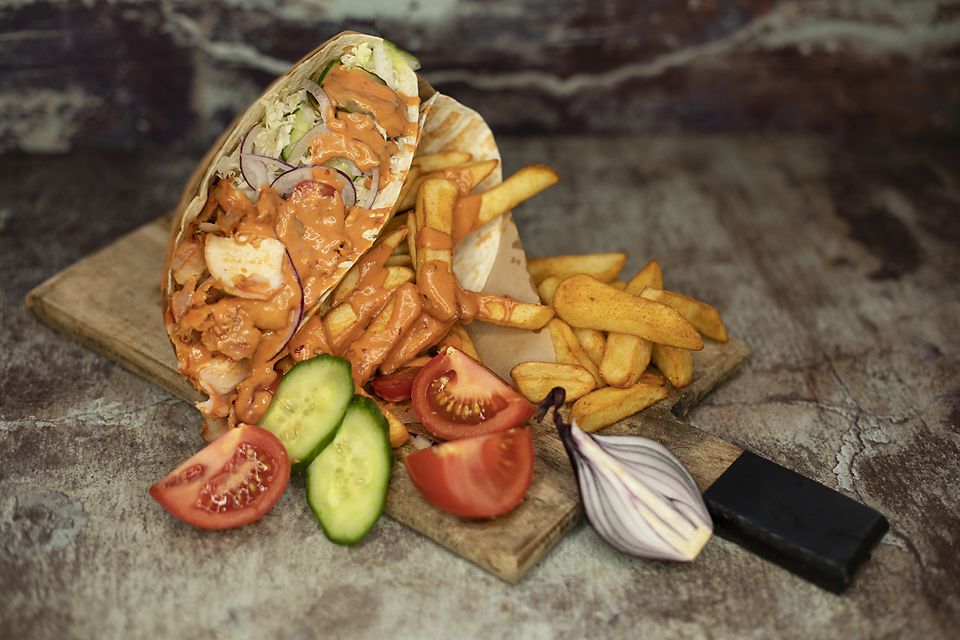 mięso do wyboru (wołowe, kurczak, mix), sezonowa mieszanka sałat i warzyw, frytki belgijskie, sos do wyboru (łagodny, średni, ostry, czosnkowy)